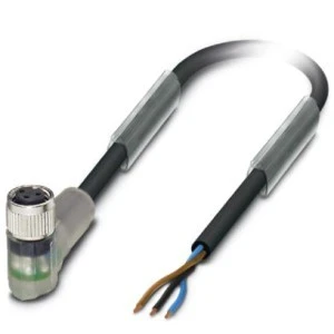 Kabel czujnika/urządzenia wykonawczego, 3-bieg., PUR bezhalogenowy, czarno-szary (RAL 7021), wolny koniec przewodu, na Gniazdo kątowe M8, z 2 LED, długość kabla: 10 m