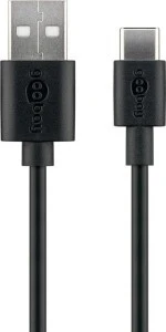 Miękki kabel USB-C do USB-A tekstylny, z metalowymi złączami, czarny 74526 /1m/
