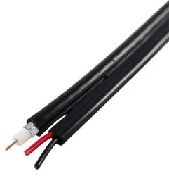 Przewód koncentryczny RG59 + 2 zasilania. RG59 plus 2 przewody zasilające przeznaczone do dystrybucji sygnału i systemów bezpieczeństwa, takich jak CCTV.