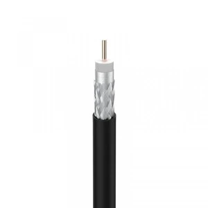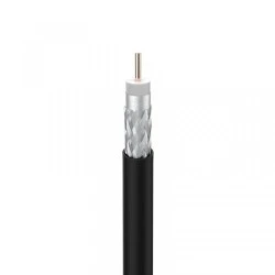 Kabel koncentryczny RG-6 z żyłą miedzianą i aluminiowym oplotem (Cu/Al). Doskonałe pokrycie oplotu (77%). Kabel 16PAtC, podwójne ekranowanie, osłona zewnętrzna: Polietylen (PE).