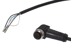 Kabel konfekcjonowany jednostrony złącze M12 żeńskie 4‑PIN kątowe wolny koniec przewodu 4x0,34mm² 5m PUR IP67 250V VK505321