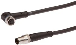 Kabel połączeniowy, 5 m, żeński M8 (gniazdo) 4‑PINowy kątowy, męski M8 (złącze) 3‑PINowy prosty VK50E054