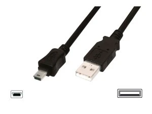 Kabel połączeniowy USB 2.0 umożliwiający podłączenie do komputera urządzeń ze złączami USBminiB (5pinów), np. obudów na dyski. Zapewnia szybkość transmisji danych do 480 MBit/s.
