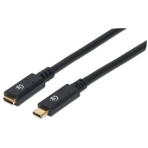 Kabel USB 3.2 Typ-C Manhattan 355681 – Kabel Przedłużacz USB-C 3.2 Gen1 1m Czarny, 60W 3A, Pozłacane Styki