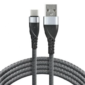 Kabel przewód pleciony USB ‑ USB‑C / Typ‑C everActive CBB‑2CG 200cm z obsługą szybkiego ładowania do 3A szary