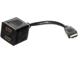 Kabel rozdzielacz audio-video umożliwiający przysłanie cyfrowego sygnału HD do dwóch wyświetlaczy wyposażonych w złącze HDMI. UWAGA: Obraz może być wyświetlany wyłącznie na jednym z urządzeń, nie ma możliwości jednoczesnego korzystania z obydwu wyświetlaczy.