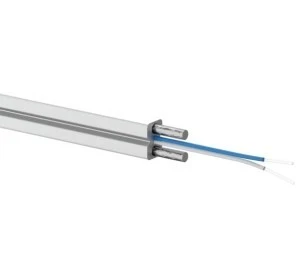 Kabel uniwersalny (zewnętrzno-wewnętrzne), płaski do zastosowania w systemach FTTx. Lekka konstrukcja o małej średnicy, duża giętkość i odporność na przeciąganie, suchy ośrodek, płaszcz LSOH odporny na UV, wzmocnienie dwoma prętami FRP.