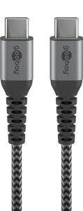 Kabel tekstylny USB‑C™ na USB‑C ™ z metalowymi wtyczkami ( szary / srebrny) 2 m ‑ Długość kabla 2 m