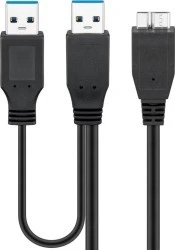 Kabel USB 3.0 Dual Power SuperSpeed, Czarny ‑ Długość kabla 0.3 m