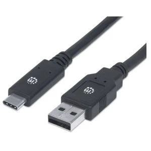 Przewód USB-C Manhattan 354974 – Kabel USB 3.2 Gen1 Typ-C – Typ-A, 2m, 60W 3A, SuperSpeed 5Gbps, Czarny