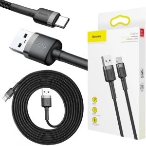 KABEL USB-A -> USB-C Baseus Cafule CATKLF-CG1 200cm 2A QC 3.0 CZARNO-SZARY W NYLONOWYM OPLOCIE