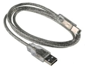 Męski przewód RS PRO 1 m USB 2.0 A z wtykiem męski-B ma przezroczystą koszulkę z PCW. Kabel elastyczny posiada miedziane przewody rurowe i przewód spustowy, oplot aluminiowy, ekranowanie foliowe i ma zewnętrzną średnicę 4 mm. Złącza i styki wykonane są z niklu i posiadają również pokrywy PCV. USB Do podłączania urządzeń, takich jak drukarki, skanery i niektóre zewnętrzne dyski twarde do komputera używane są męskie lub męskie kable USB.