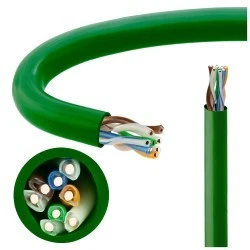 Wysokiej jakości przewód U/UTP przeznaczony do budowy sieci komputerowych spełniającej wymogi kategorii 5e oraz pracujących w częstotliwości 100 MHz. Kabel charakteryzuje się doskonałymi parametrami elektrycznymi, pozwala na transmisję danych, dźwięku i obrazu telewizyjnego o przepustowości binarnej do 1 Gb/s. Posiada solidną powłokę PVC (polwinit o podwyższonym indeksie tlenowym) oraz żyły wykonane w 100% z miedzi o średnicy 24AWG.