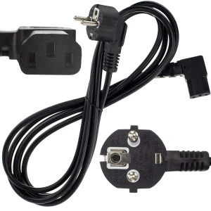 rodzaj złącza: C13 (męski odpowiednik to C14) zgięty pod kątem 90°; z drugiej strony wtyk uniwersalny (DIN49441)