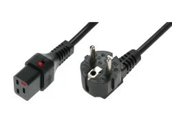 Kabel zasilający serwerowy 3x1,5 Schuko kątowy/IEC C19 prosty M/Ż czarny IEC‑EL262S /2m/