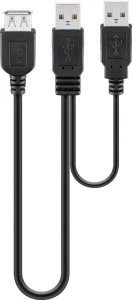 Kabel zasilający USB 2.0 Hi‑Speed Dual‑Power, Czarny ‑ Długość kabla 0.3 m