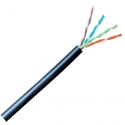 Wysokiej klasy teleinformatyczny nieekranowany przewód czteroparowy kategorii 5e w powłoce zewnętrznej wykonanej z czarnego polietylenu (PE) odpornego na działanie promieni UV oraz czynników atmosferycznych.