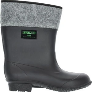 Kalosz filcowy "FILCAK" STALCO wykonano z PVC modyfikowanego kauczukiem. Taka mieszanka jest odporna na działanie wilgoci, elastyczna, trwała i łatwa w czyszczeniu. Wewnątrz butów znajduje się filcowe ocieplenie, które poprawia komfort termiczny w czasie prac wykonywanych jesienią i zimą.