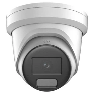 Kamera IP Hikvision typu Turret ColorVU z klasyfikacją obiektów: człowiek/pojazd, rozdzielczość 2MP (1920 × 1080/25kl.s), 1/2.8 " Progressive Scan CMOS, czułość: kolor: 0.0005 Lux @ (F1.0, AGC ON), Cz/B: 0 Lux dla światła; 120dB WDR, Obiektyw 2.8 mm, HFOV 107°, VFOV 56°, DFOV 127°; Zasięg światła białego do 30m; Trzy strumienie; Kompresja H.265/H.264/H.264+/H.265+; Przełączalne parametry obrazu BLC/3D DNR/HLC, tryb korytarzowy; wbudowany slot na kartę SD do 256G; Funkcje: Zdarzenia podstawowe: detekcja ruchu, sabotaż, wyjątki; zdarzenia smart: nagła zmiana sceny. Funkcje DeepLearning: przechwytywanie twarzy, ochrona perymetryczna; Wymiary: O138.3 mm × 115.4 mm; Waga: 770g, Temperatura pracy: -30 °C do 60 °C; Zasilanie: 12 VDC ± 25%, PoE: 802.3af, Class 3; IP67