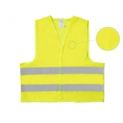 Kamizelka odblaskowa wykonana z 100 % poliestrowgo materiału siateczkowego. Posiada dwa pasy odblaskowe dookoła korpusu. Zapinana na rzep. Kat. I. EN 13688:2013.