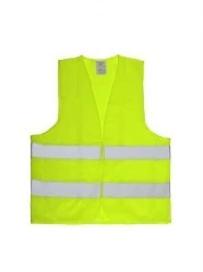 Kamizelka ostrzegawcza wykonana w 100% z poliestru o gramaturze 120 g/m², posiada dwa pasy odblaskowe dookoła korpusu. Zapinana na rzep. Kat. II Certyfikat UE CE, zgodność z normą EN ISO 20471:2013 (Rozmiar M - Kat. I EN 13688:2013)