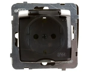 IMPRESJA Gniazdo bryzgoszczelne z/u Schuko IP44 klapka przezroczysta srebrne GPH-1YS/m/18/d