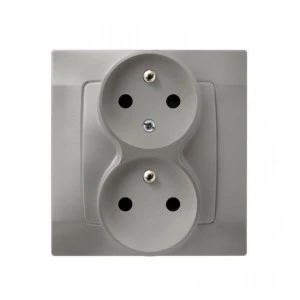 KARO Gniazdo podwójne z/u z niezamiennością faz srebrny perłowy GP‑2SC/43