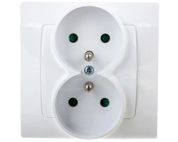 AS Gniazdo podwójne z/u z przesłonami białe GP-2GZP/00
