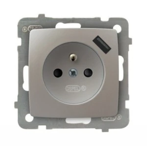 Karo Gniazdo pojedyncze z uziemieniem z przesłonami torów prądowych, z ładowarką USB srebrny perłowy GP‑1SZPUSB/m/43