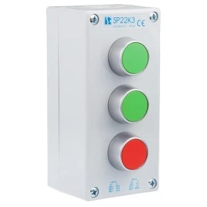 Kaseta kompletna 3‑otworowa z przyciskami krytymi zielony/zielony/czerowny SP22K3\01‑1