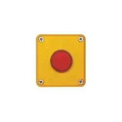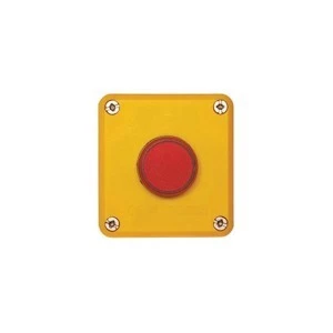 Kaseta sterownicza 1-otworowa, czarno – żółta, z tworzywa sztucznego, z wyposażeniem: – Lampka z tworzywa z kloszem płaskim NEF22TLD c, czerwona – Dławik PG13,5