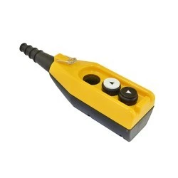Kaseta sterownicza koloru żółto-czarnego wyposażona w 2 przyciski sterownicze ze strzałkami (jedna prędkość) oraz zaślepkę.