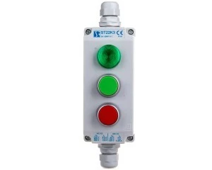 Kaseta sterownicza 3‑otworowa zielony/czerwony/lampka zielona 230V IP65 1x membrana M20 szara ST22K3\06‑2