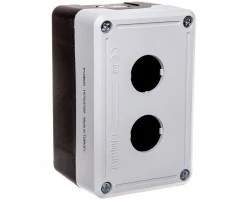 Kaseta sterownicza koloru szaro-czarnego, z otworami Ø22 mm, możliwość zamontowania przycisków sterowniczych, lampek sygnalizacyjnych, monobloków oraz joysticków.