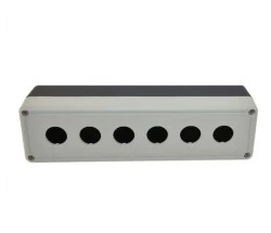 Kaseta sterownicza koloru szaro-czarnego, z otworami Ø22 mm, możliwość zamontowania przycisków sterowniczych, lampek sygnalizacyjnych, monobloków oraz joysticków.