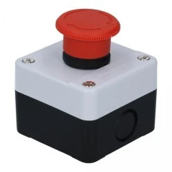 Awaryjny przycisk bezpieczeństwa załączany poprzez bezpośrednie wciśnięcie grzybka.