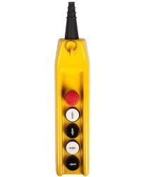 Kaseta została wykonana z tworzywa, które cechuje się dużą udarnością, twardością oraz odpornością na zarysowania. Produkt jest przeznaczony do sterowania i operowania suwnicami, żurawiami oraz podnośnikami. Posiada stopień ochrony IP65, dzięki czemu jest odporny na działanie pyłu i wody i z powodzeniem może być używany w halach produkcyjnych oraz na zewnątrz budynków.