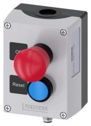 Kaseta szara z przyciskiem bezpieczeństwa 2R i przyciskiem niebieskim 1Z złącze M12 8pin IP69k SIRIUS ACT 3SU1802‑0NE00‑4SB1
