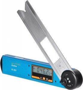 EL 823 to profesjonalny kątomierz elektroniczny niemieckiej marki geo-FENNEL, zamknięty w ergonomicznej, mocnej obudowie. Pomiar kąta odbywa się w pełnym zakresie 360 stopni, a stalowe ramię można zablokować w dowolnej pozycji.Wynik pomiaru jest widoczny na czytelnym ekranie LCD. Urządzenie jest ponadto wyposażone w funkcję HOLD, która umożliwia zatrzymanie na ekranie zmierzonej wartości kąta. EL 823 to kompaktowy kątomierz elektroniczny, który zmieści się praktycznie w każdej skrzynce narzędziowej. Jest szczególnie polecany wykonawcom konstrukcji szkieletowych i dachów, ale również osobom wykonującym różne prace wykończeniowe. Kątomierz został wykonany z wysokiej jakości aluminium, stali oraz tworzyw sztucznych.Cechy wyróżniające: pomiar kątów w pełnym zakresie 360stopni, czytelny wyświetlacz LCD, stalowe ramię z blokadą w dowolnej pozycji, funkcja HOLD umożliwia zatrzymanie wyniku pomiaru na wyświetlaczu.Podstawowe dane techniczne: rodzaj profilu aluminium, dokładność pomiaru kąta 0,1stopni, długość ramion 25/25 cm, zakres pomiarowy 0stopni-360stopni.Wyposażenie: kątomierz elektroniczny, pokrowiec, instrukcja obsługi.Do produktu dodano profity specjalne, m. in.: trzeci rok ochrony gwarancyjnej.