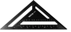 Materiał stop aluminium powierzchnia lakierowana naniesiona trwale podziałka milimetrowa i calowa oraz specjalistyczne podziałki kątowe przeznaczone do pomiarów wykonywanych przy pracach ciesielskich i dekarskich.