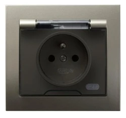KIER Gniazdo bryzgoszczelne z/u IP44 klapka przezroczysta satyna light GPH‑1WZ/45/d