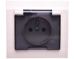 KIER Gniazdo bryzgoszczelne z/u IP44 z przesłonami klapka przezroczysta beżowe GPH‑1WZP/01/d