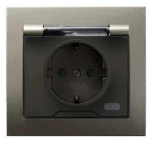 LOGI Gniazdo hermetyczne z klapką 2P+Z IP44 Schuko śrubowe 16A 250V Grafit 25264