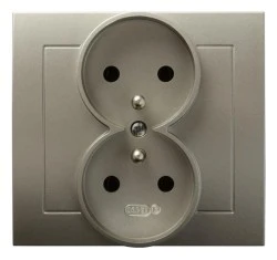 KIER Gniazdo podwójne z/u z przesłonami satyna light GP-2WZP/45