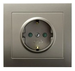 KIER Gniazdo pojedyncze z/u Schuko z przesłonami satyna light GP‑1WSP/45