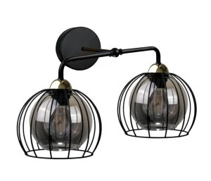 Centralnym punktem tego kinkietu są misternie wykonane klosze w formie drucianej kuli, nadające charakterystyczny klimat loftowy. Wewnątrz klosza znajduje się kolejny dymiony szklany klosz, który dodaje delikatności i subtelności emitowanemu światłu. To nie tylko oświetlenie, ale również wyjątkowy element dekoracyjny.