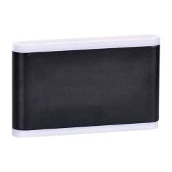 Czarno-biały, prostokątny Kinkiet K-8143 z serii SITRA to niebanalne rozwiązanie, jeśli zależy nam na oświetleniu domu z zewnątrz. Swoją ciekawą formą nada ciekawy klimat i stworzy niepowtarzalną poświatę na murze. Choć na pewno znajdzie zastosowanie solo, najlepszym rozwiązaniem jest zaopatrzenie się w cały zestaw takich lamp, dzięki temu zachowamy jeden styl i wszystkie razem będą tworzyć ciekawą iluminacyjną kompozycję.Produkt wykonano z trwałego metalu oraz odpornego na nagrzewanie tworzywa sztucznego. Materiały te posiadają najwyższą jakość i wytrzymałość. Dzięki zastosowaniu tak pierwszorzędnych komponentów, kinkiet może się poszczycić stopniem ochrony o wartości IP54.