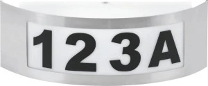 Lampa ogrodowa - plafon w formie podświetlanej, metalowej tabliczki z numerem domu marki Polux, w kolorze srebrnym (czarne, naklejane cyferki w zestawie) świetnie sprawdzi się jako praktyczne podświetlenie Twojego numeru domu oraz sprawi, że nikt nie będzie miał problemu z trafieniem pod Twój adres. Nowoczesny plafon elewacyjny, o podwyższonej klasie szczelności IP44, wykonany ze stali nierdzewnej idealnie sprawdzi się jako zewnętrzne oświetlenie. Plafon został przystosowany do zamontowania żarówki z gwintem E27 (brak żarówki w zestawie) o maksymalnej mocy 14W LED. Łatwa wymiana żarówki oraz profesjonalne wykonanie produktu zapewnia trwałość na długie lata.