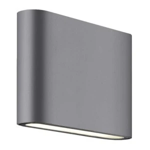Antracytowy kinkiet Sapri wykonany z metalu. Kinkiet posiada prostą, geometryczną formę, która wpisuje się w nowoczesne, minimalistyczne trendy. Posjada klasę ochronności IP54, co oznacza, że kinkiet jest odporny na krople padające pod dowolnym kątem ze wszystkich stron (deszcz) oraz jest pyłoszczelny. Dzięki temu kinkiet Sapri może być użyty również na zewnątrz budynku. Kinkiet posiada wbudowane światło LED o neutralnej barwie 4000K oraz dwa punkty światła, jedno skierowane ku dołowi, drugie ku górze. Wyjątkowe Właściwości Wysokiej jakości materiały Nowoczesny design