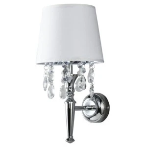 Kinkiet Vigo to wyjątkowy element oświetleniowy, który łączy nowoczesną elegancję z wyrafinowanym designem. Lampa posiada solidną podstawę wykonaną z metalu w kolorze srebra oraz abażur z białej tkaniny, który nadaje całości subtelny i elegancki wygląd. W połączeniu ze zwisającymi, mieniącymi się kryształkami, kinkiet Vigo staje się niezwykle efektowną propozycją do każdego wnętrza. Szczegóły produktu Rodzaj lampy Wymiary Materiał i kolorystyka Źródło światła Kinkiet Vigo jest idealnym wyborem do wnętrz urządzonych w stylu klasycznym i nowojorskim. Jego elegancki wygląd, podkreślony białym abażurem i połyskującymi kryształkami, dodaje wnętrzom wyrafinowania i luksusowego blasku.